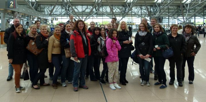 An diesem Tag wurde sehr konzentriert gearbeitet, denn wir hatten noch Großes vor und wußten, unser Flugzeug würde nicht auf uns warten. Ganz pünktlich schafften wir es, aus der Praxis zu kommen und zum Flughafen zu fahren. 30 Mitarbeiter der Praxis checkten am Freitagnachmittag im Münchner Flughafen Richtung Hamburg ein.